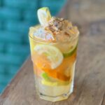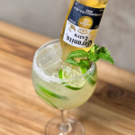 Rum, limão, açúcar, hortelã, tônica ou água com gás.