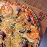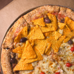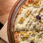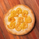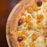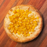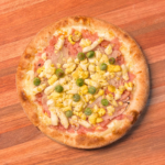 Molho de tomate, cream cheese, frango desfiado, milho verde e bacon