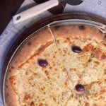 Presunto picado, azeitonas verdes, requeijão, ovos, mussarela com borda de requeijão