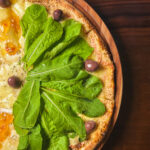 Escarola refogada, presunto picado, palmito, bacon e parmesão