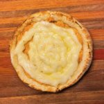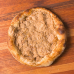 Doce de Leite, Banana, Farofa de Amendoim e Cream Cheese. Finalizada com Canela em Pó.