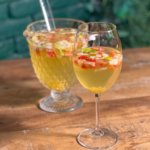 Vinho da casa, conhaque, cointreau, água com gás e frutas.