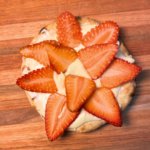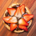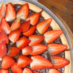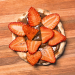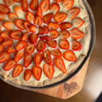 Base cremosa de Ninho coberta com morangos e leite em pó Ninho.