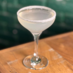 Vodka, suco de limão, xarope e espuma de gengibre.
