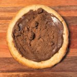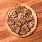 Creme a base de leite condensado, essência de baunilha, coberta com chocolate Hershey’s e bolacha Calipso.